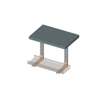 Console rigide et universelle permettant le supportage le long d'un pendard d'un chemin de câbles fil ou tôle. Son demi talon a l'avantage de limiter son encombrement et de se plaquer au-dessus d'un faux plafond